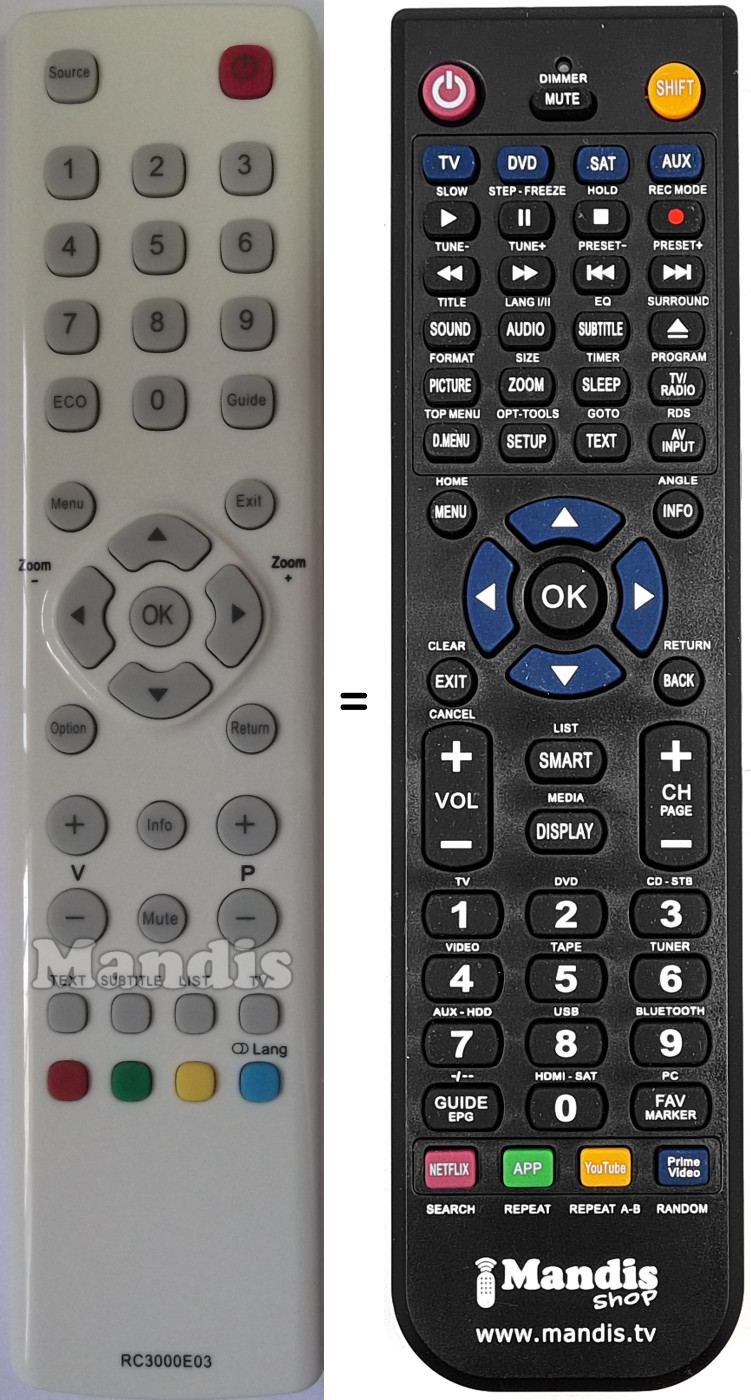 Comandament a distància que substitueix a l'original en totes les seves funcions.