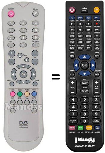 Comandament a distància que substitueix a l'original en totes les seves funcions. No es tracta d'un comandament universal sinó d'una còpia que substitueix l'original. Rebrà el comandament completament preparat per fer-lo funcionar només necessita posar-li les piles. No cal programar-lo. Té total garantia de que el comandament cumplirà amb les mateixes funcions de l'original.