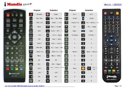A continuació, us mostrarem la correspondència entre cada un dels botons del comandament original i el botó que realitza la mateixa funció en el comandament de substitució. En alguns casos, és possible que necessiti prémer la tecla SHIFT abans de prémer un altre botó per realitzar certes accions. Aquestes funcions addicionals sovint no s'utilitzen gaire i s'inclouen per facilitar la comprensió del comandament de substitució, o perquè el comandament original té més botons que el seu equivalent.