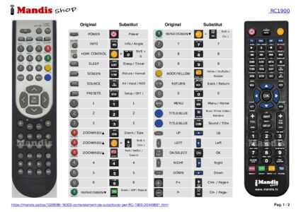 Aquest comandament a distància substitueix completament el teu RC-1900 (30063114) en totes les seves funcions. No és un comandament universal, sinó una còpia exacta del teu original.