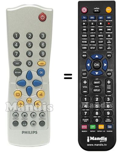 Sí, el comandament equivalent realitza totes les funcions, fins i tot quan el comandament original controla diversos aparells. Al comandament equivalent es poden programar els camps de diferents aparells (TV, DVD, SAT i AUX) d'aquesta manera es pot incloure totes les funcions del comandament original. Si si visualitza el manual de les tecles (instruccions del comandament a distància) podrà comprovar que hi ha totes les funcions.
