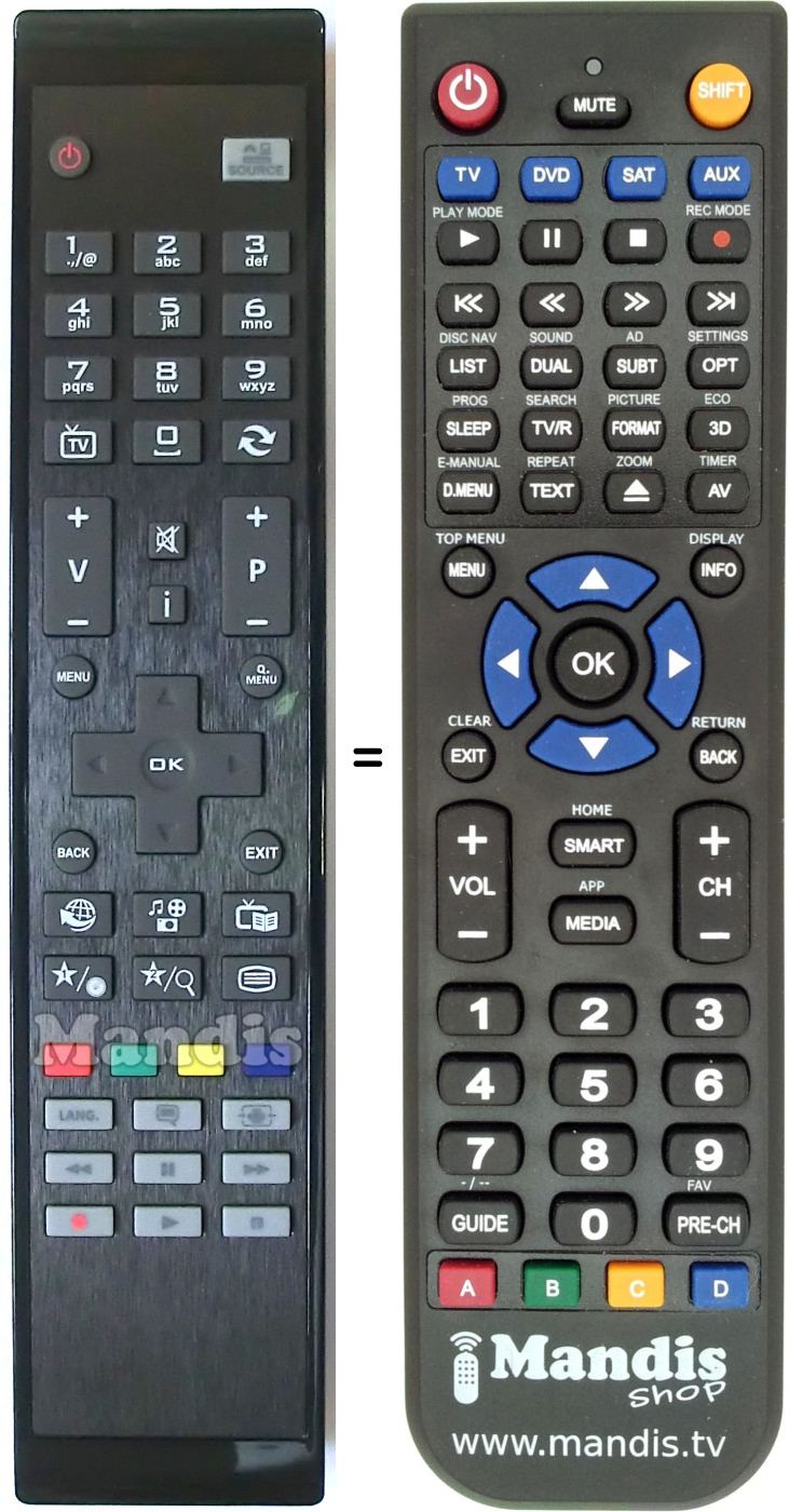 Aquest comandament a distància substitueix completament el teu RC4822 (30072765) en totes les seves funcions. No és un comandament universal, sinó una còpia exacta del teu original.
