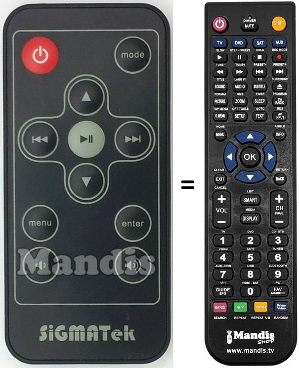 A continuació, us mostrarem la correspondència entre cada un dels botons del comandament original i el botó que realitza la mateixa funció en el comandament de substitució. En alguns casos, és possible que necessiti prémer la tecla SHIFT abans de prémer un altre botó per realitzar certes accions. Aquestes funcions addicionals sovint no s'utilitzen gaire i s'inclouen per facilitar la comprensió del comandament de substitució, o perquè el comandament original té més botons que el seu equivalent.