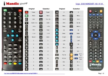 A continuació, us mostrarem la correspondència entre cada un dels botons del comandament original i el botó que realitza la mateixa funció en el comandament de substitució. En alguns casos, és possible que necessiti prémer la tecla SHIFT abans de prémer un altre botó per realitzar certes accions. Aquestes funcions addicionals sovint no s'utilitzen gaire i s'inclouen per facilitar la comprensió del comandament de substitució, o perquè el comandament original té més botons que el seu equivalent.