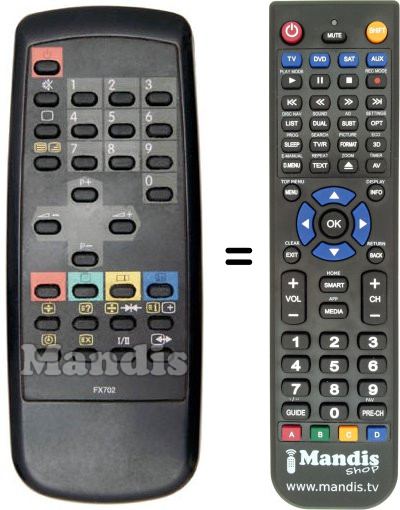 Aquest comandament a distància substitueix completament el teu FX702 en totes les seves funcions. No és un comandament universal, sinó una còpia exacta del teu original.