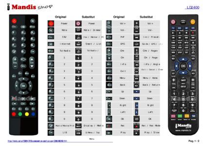 A continuació, us mostrarem la correspondència entre cada un dels botons del comandament original i el botó que realitza la mateixa funció en el comandament de substitució. En alguns casos, és possible que necessiti prémer la tecla SHIFT abans de prémer un altre botó per realitzar certes accions. Aquestes funcions addicionals sovint no s'utilitzen gaire i s'inclouen per facilitar la comprensió del comandament de substitució, o perquè el comandament original té més botons que el seu equivalent.