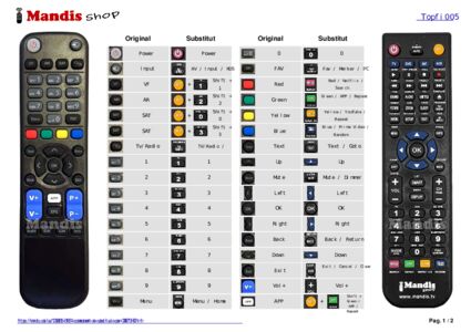 A continuació, us mostrarem la correspondència entre cada un dels botons del comandament original i el botó que realitza la mateixa funció en el comandament de substitució. En alguns casos, és possible que necessiti prémer la tecla SHIFT abans de prémer un altre botó per realitzar certes accions. Aquestes funcions addicionals sovint no s'utilitzen gaire i s'inclouen per facilitar la comprensió del comandament de substitució, o perquè el comandament original té més botons que el seu equivalent.