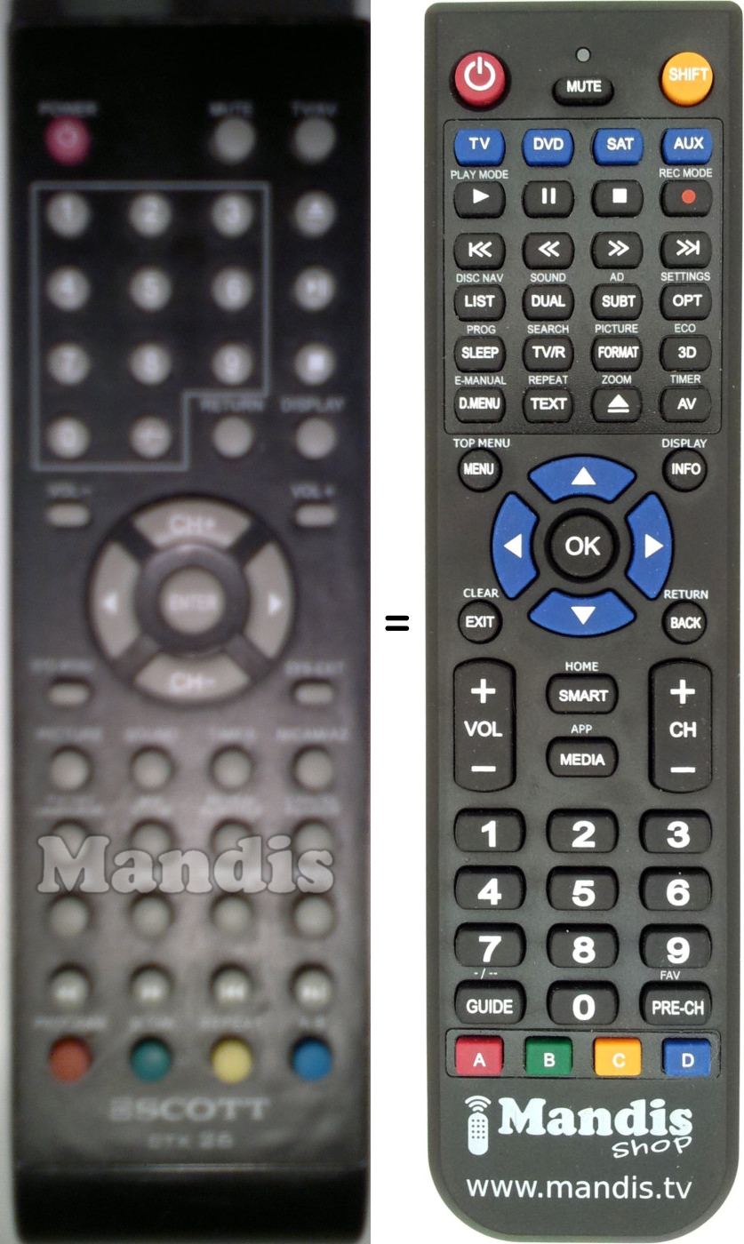 Aquest comandament a distància substitueix completament el teu CTX26 en totes les seves funcions. No és un comandament universal, sinó una còpia exacta del teu original.