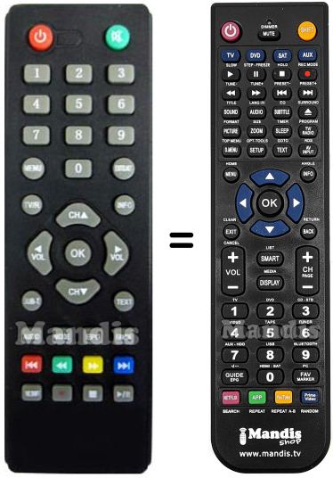 A continuació, us mostrarem la correspondència entre cada un dels botons del comandament original i el botó que realitza la mateixa funció en el comandament de substitució. En alguns casos, és possible que necessiti prémer la tecla SHIFT abans de prémer un altre botó per realitzar certes accions. Aquestes funcions addicionals sovint no s'utilitzen gaire i s'inclouen per facilitar la comprensió del comandament de substitució, o perquè el comandament original té més botons que el seu equivalent.
