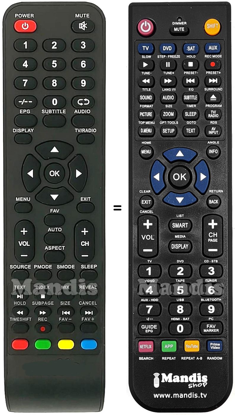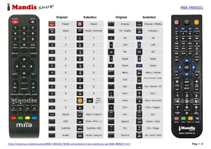 A continuació, us mostrarem la correspondència entre cada un dels botons del comandament original i el botó que realitza la mateixa funció en el comandament de substitució. En alguns casos, és possible que necessiti prémer la tecla SHIFT abans de prémer un altre botó per realitzar certes accions. Aquestes funcions addicionals sovint no s'utilitzen gaire i s'inclouen per facilitar la comprensió del comandament de substitució, o perquè el comandament original té més botons que el seu equivalent.