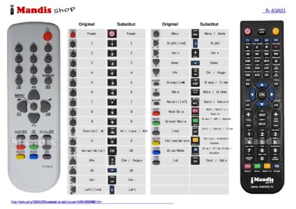 A continuació, us mostrarem la correspondència entre cada un dels botons del comandament original i el botó que realitza la mateixa funció en el comandament de substitució. En alguns casos, és possible que necessiti prémer la tecla SHIFT abans de prémer un altre botó per realitzar certes accions. Aquestes funcions addicionals sovint no s'utilitzen gaire i s'inclouen per facilitar la comprensió del comandament de substitució, o perquè el comandament original té més botons que el seu equivalent.