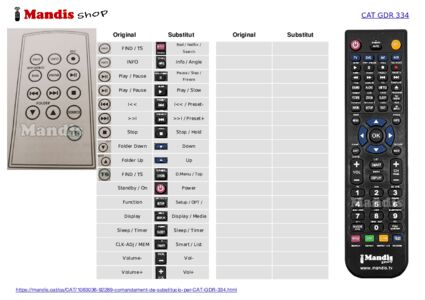 Inici > Marques > Comandaments a distància CAT > Comandament per CAT GDR 334 > Distribució interactiva de tecles CAT GDR 334