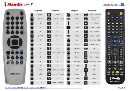 A continuació, us mostrarem la correspondència entre cada un dels botons del comandament original i el botó que realitza la mateixa funció en el comandament de substitució. En alguns casos, és possible que necessiti prémer la tecla SHIFT abans de prémer un altre botó per realitzar certes accions. Aquestes funcions addicionals sovint no s'utilitzen gaire i s'inclouen per facilitar la comprensió del comandament de substitució, o perquè el comandament original té més botons que el seu equivalent.