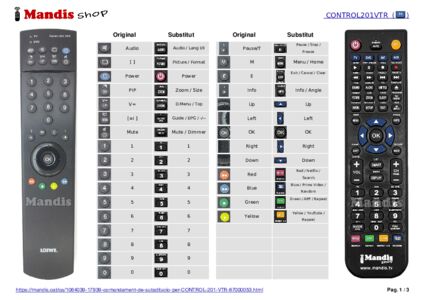 A continuació, us mostrarem la correspondència entre cada un dels botons del comandament original i el botó que realitza la mateixa funció en el comandament de substitució. En alguns casos, és possible que necessiti prémer la tecla SHIFT abans de prémer un altre botó per realitzar certes accions. Aquestes funcions addicionals sovint no s'utilitzen gaire i s'inclouen per facilitar la comprensió del comandament de substitució, o perquè el comandament original té més botons que el seu equivalent.