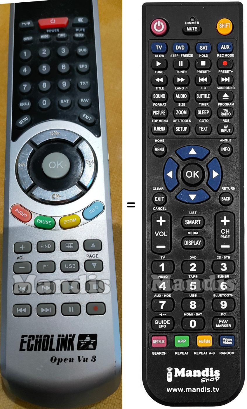 Aquest comandament a distància substitueix completament el teu Open Vu 3 en totes les seves funcions. No és un comandament universal, sinó una còpia exacta del teu original.