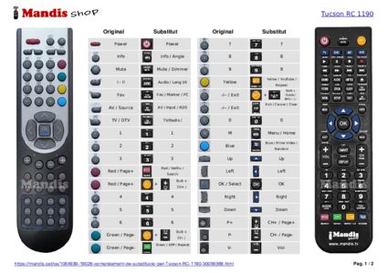 Aquest comandament a distància substitueix completament el teu RC1190S en totes les seves funcions. No és un comandament universal, sinó una còpia exacta del teu original.