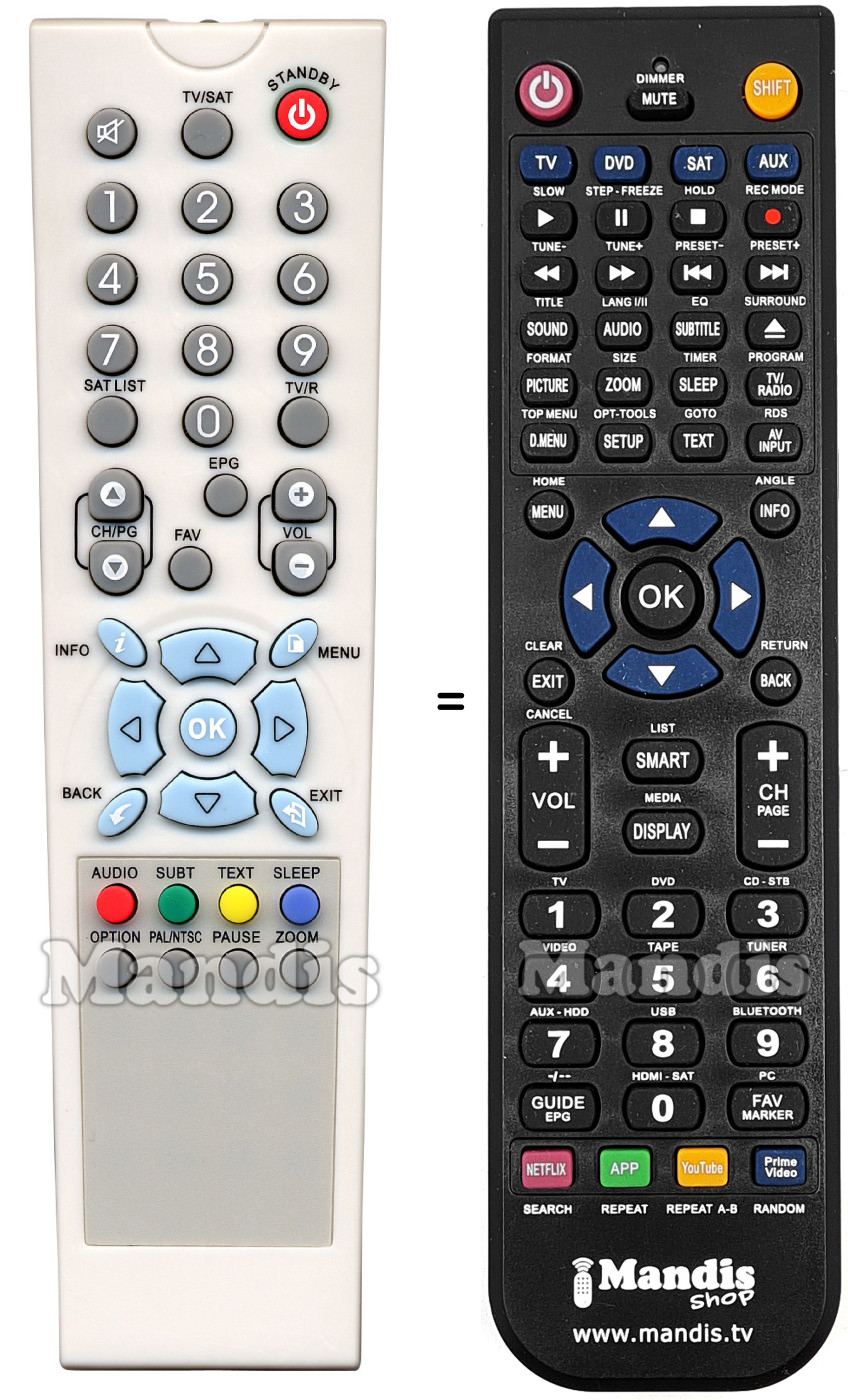 Aquest comandament a distància substitueix completament el teu REMCON1002 en totes les seves funcions. No és un comandament universal, sinó una còpia exacta del teu original.