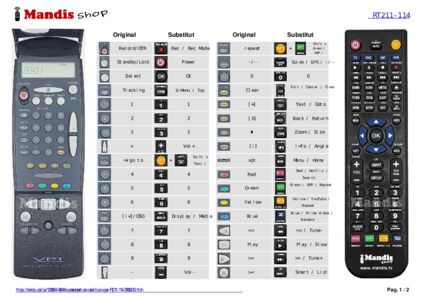 Aquest comandament a distància substitueix completament el teu RT211-114 (0P009213) en totes les seves funcions. No és un comandament universal, sinó una còpia exacta del teu original.