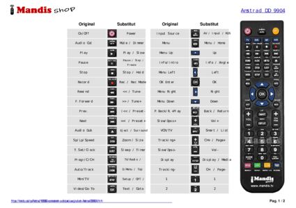 Inici > Marques > Comandaments a distància Amstrad > Comandament per Amstrad DD 9904 > Distribució interactiva de tecles Amstrad DD 9904