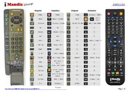 Aquest comandament a distància substitueix completament el teu EUR511220 en totes les seves funcions. No és un comandament universal, sinó una còpia exacta del teu original.