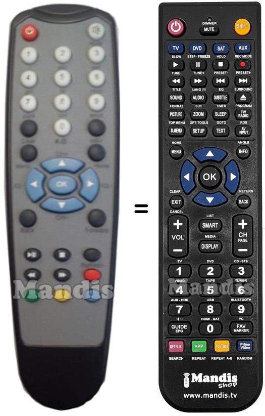Aquest comandament a distància substitueix completament el teu IPTV002 en totes les seves funcions. No és un comandament universal, sinó una còpia exacta del teu original.