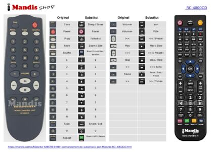 A continuació, us mostrarem la correspondència entre cada un dels botons del comandament original i el botó que realitza la mateixa funció en el comandament de substitució. En alguns casos, és possible que necessiti prémer la tecla SHIFT abans de prémer un altre botó per realitzar certes accions. Aquestes funcions addicionals sovint no s'utilitzen gaire i s'inclouen per facilitar la comprensió del comandament de substitució, o perquè el comandament original té més botons que el seu equivalent.