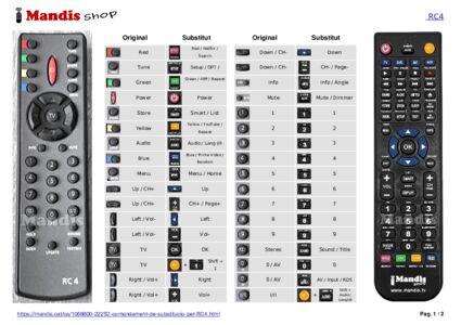 Aquest comandament a distància substitueix completament el teu RC4 en totes les seves funcions. No és un comandament universal, sinó una còpia exacta del teu original.
