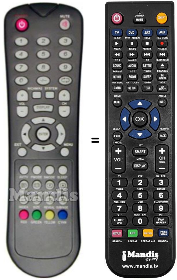 Comandament a distància que substitueix a l'original en totes les seves funcions.