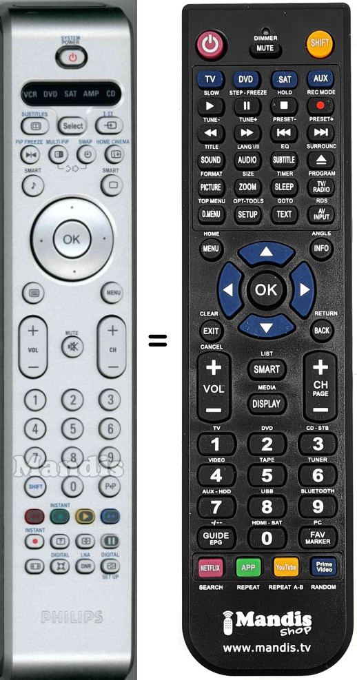 Comandament a distància que substitueix el comandament Radiola001 en totes les seves funcions.