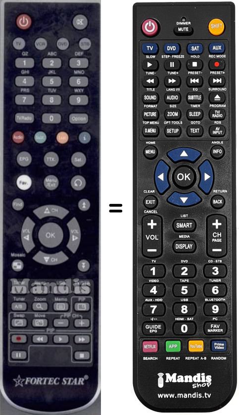 Comandament a distància que substitueix a l'original en totes les seves funcions. No es tracta d'un comandament universal sinó d'una còpia que substitueix l'original. Rebrà el comandament completament preparat per fer-lo funcionar només necessita posar-li les piles. No cal programar-lo. Té total garantia de que el comandament cumplirà amb les mateixes funcions de l'original.