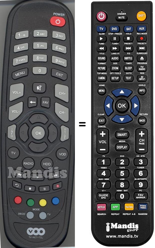 Comandament a distància que substitueix a l'original en totes les seves funcions. No es tracta d'un comandament universal sinó d'una còpia que substitueix l'original. Rebrà el comandament completament preparat per fer-lo funcionar només necessita posar-li les piles. No cal programar-lo. Té total garantia de que el comandament cumplirà amb les mateixes funcions de l'original.