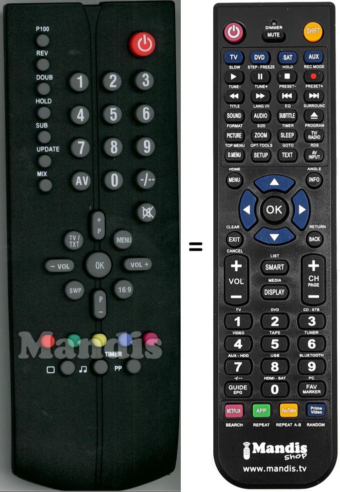 Comandament a distància que substitueix el comandament Phonola003 en totes les seves funcions.