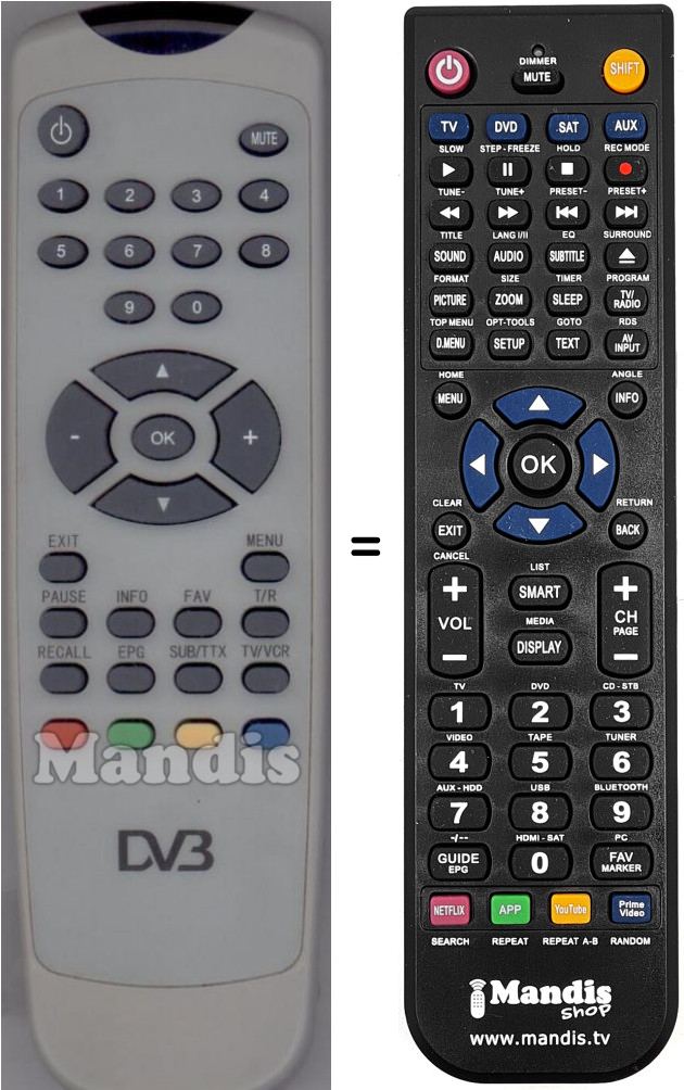 Comandament a distància que substitueix a l'original en totes les seves funcions. No es tracta d'un comandament universal sinó d'una còpia que substitueix l'original. Rebrà el comandament completament preparat per fer-lo funcionar només necessita posar-li les piles. No cal programar-lo. Té total garantia de que el comandament cumplirà amb les mateixes funcions de l'original.