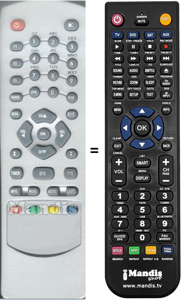 Comandament a distància que substitueix a l'original en totes les seves funcions. No es tracta d'un comandament universal sinó d'una còpia que substitueix l'original. Rebrà el comandament completament preparat per fer-lo funcionar només necessita posar-li les piles. No cal programar-lo. Té total garantia de que el comandament cumplirà amb les mateixes funcions de l'original.