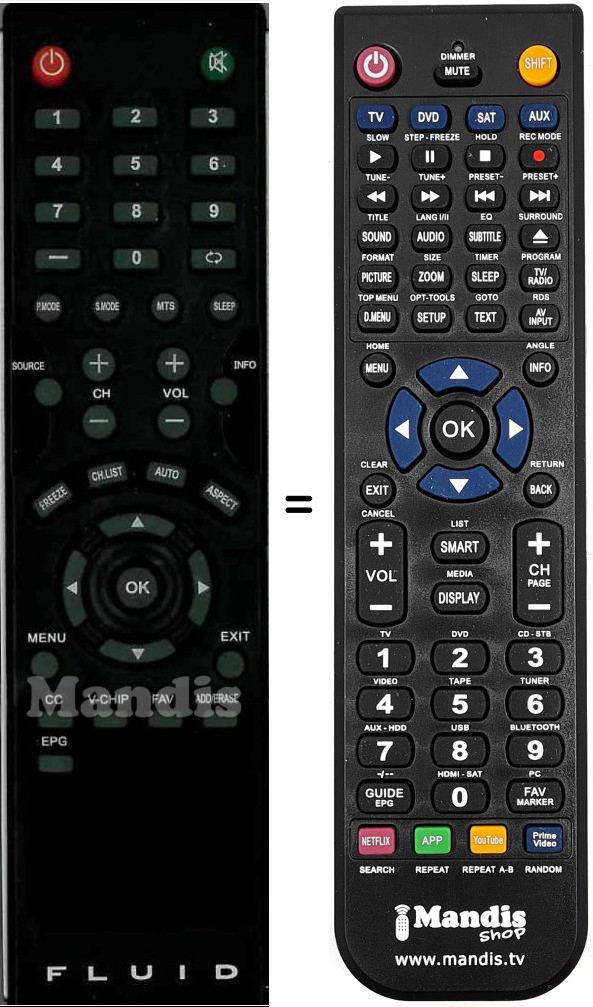 Comandament a distància que substitueix a l'original en totes les seves funcions.