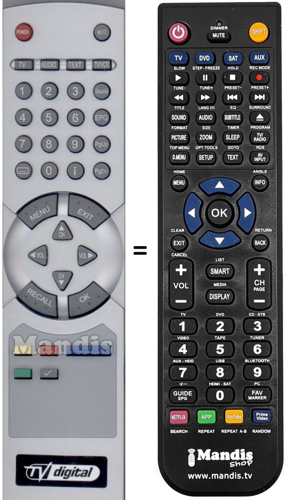 Comandament a distància que substitueix a l'original en totes les seves funcions.