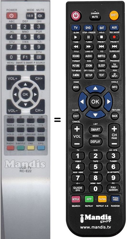 Comandament a distància que substitueix a l'original en totes les seves funcions. No es tracta d'un comandament universal sinó d'una còpia que substitueix l'original. Rebrà el comandament completament preparat per fer-lo funcionar només necessita posar-li les piles. No cal programar-lo. Té total garantia de que el comandament cumplirà amb les mateixes funcions de l'original.