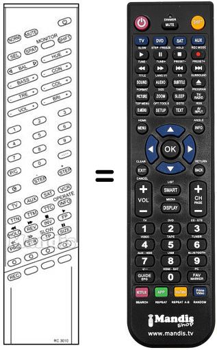 Comandament a distància que substitueix a l'original en totes les seves funcions. No es tracta d'un comandament universal sinó d'una còpia que substitueix l'original. Rebrà el comandament completament preparat per fer-lo funcionar només necessita posar-li les piles. No cal programar-lo. Té total garantia de que el comandament cumplirà amb les mateixes funcions de l'original.