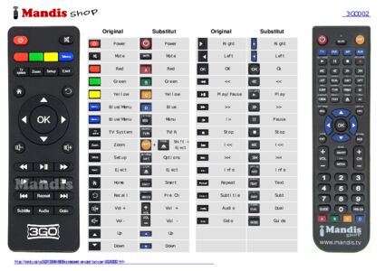 Aquest comandament a distància substitueix completament el teu 3GO002 en totes les seves funcions. No és un comandament universal, sinó una còpia exacta del teu original.