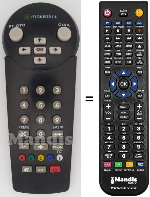 Comandament a distància que substitueix a l'original en totes les seves funcions.
