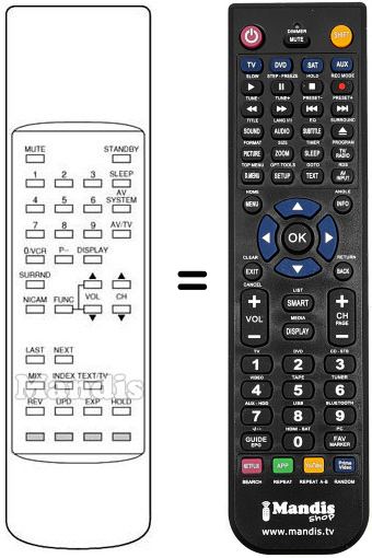 Comandament a distància que substitueix a l'original en totes les seves funcions. No es tracta d'un comandament universal sinó d'una còpia que substitueix l'original. Rebrà el comandament completament preparat per fer-lo funcionar només necessita posar-li les piles. No cal programar-lo. Té total garantia de que el comandament cumplirà amb les mateixes funcions de l'original.