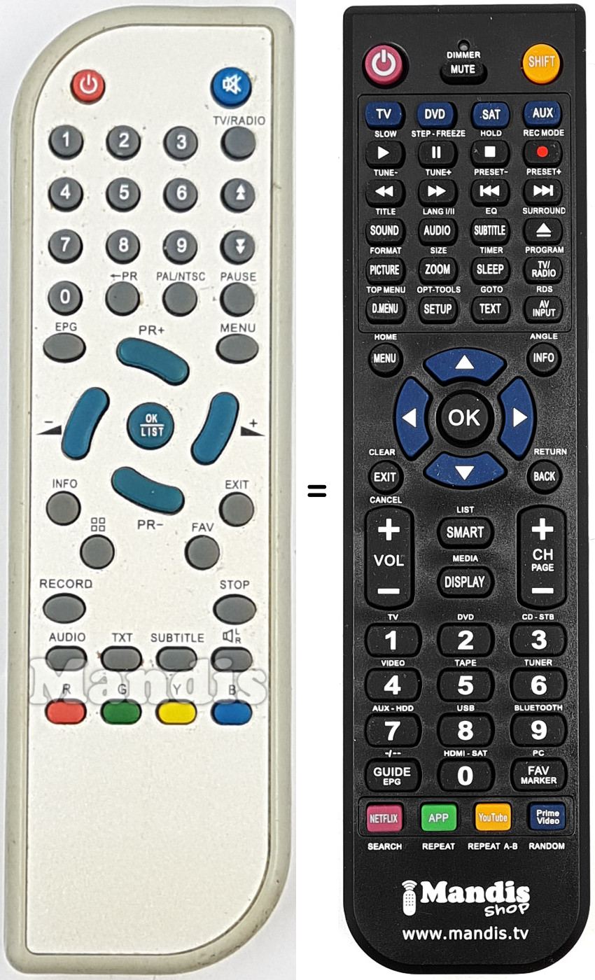 Comandament a distància que substitueix a l'original en totes les seves funcions.