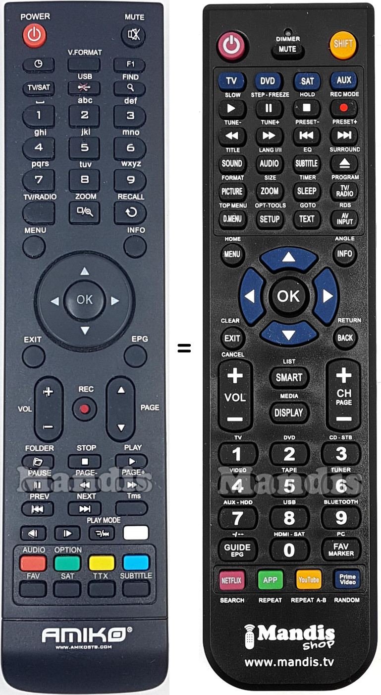 A continuació, us mostrarem la correspondència entre cada un dels botons del comandament original i el botó que realitza la mateixa funció en el comandament de substitució. En alguns casos, és possible que necessiti prémer la tecla SHIFT abans de prémer un altre botó per realitzar certes accions. Aquestes funcions addicionals sovint no s'utilitzen gaire i s'inclouen per facilitar la comprensió del comandament de substitució, o perquè el comandament original té més botons que el seu equivalent.