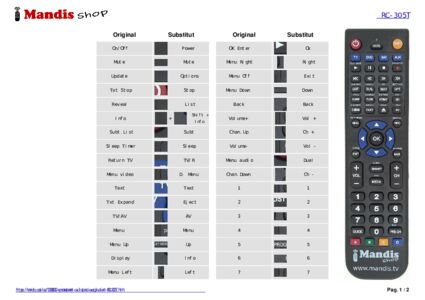 S'inclou un document amb la correspondència dels botons del nou comandament a distància per facilitar el seu ús.