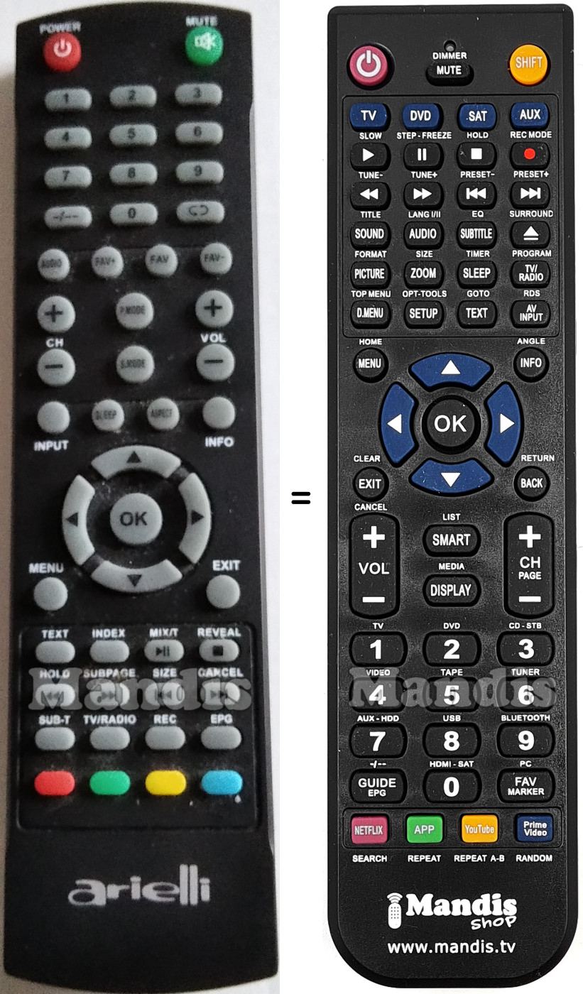 A continuació, us mostrarem la correspondència entre cada un dels botons del comandament original i el botó que realitza la mateixa funció en el comandament de substitució. En alguns casos, és possible que necessiti prémer la tecla SHIFT abans de prémer un altre botó per realitzar certes accions. Aquestes funcions addicionals sovint no s'utilitzen gaire i s'inclouen per facilitar la comprensió del comandament de substitució, o perquè el comandament original té més botons que el seu equivalent.
