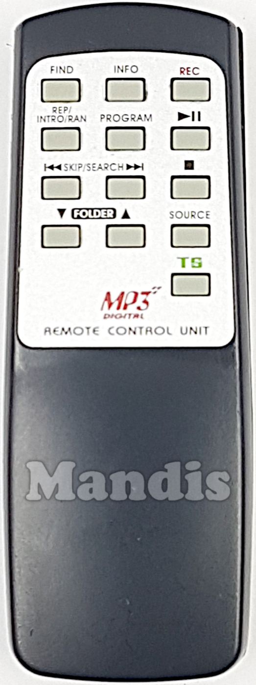 Find, Info, Rec, Rep / Intro / Ran, Program, Play / Pause, I<< Skip/Search, Skip/Search >>I, Stop, Folder Down, Folder Up, Source, TS
