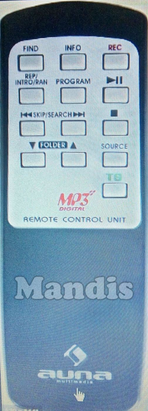 Comandament a distància original 388-BT que serveix per cadena hi-fi de la marca AUNA. Es tracta d'un model original de comandament a distància.