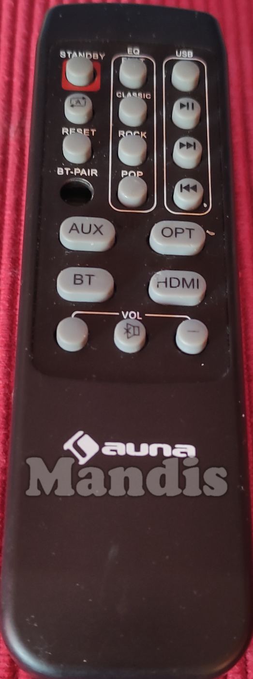 Comandament a distància original Aral que serveix per barra so de la marca AUNA. Es tracta d'un model original de comandament a distància.
