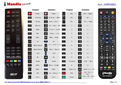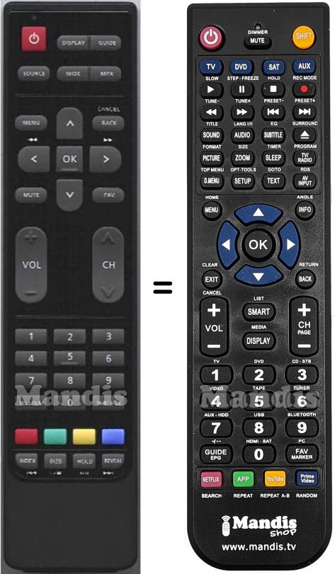 A continuació, us mostrarem la correspondència entre cada un dels botons del comandament original i el botó que realitza la mateixa funció en el comandament de substitució. En alguns casos, és possible que necessiti prémer la tecla SHIFT abans de prémer un altre botó per realitzar certes accions. Aquestes funcions addicionals sovint no s'utilitzen gaire i s'inclouen per facilitar la comprensió del comandament de substitució, o perquè el comandament original té més botons que el seu equivalent.