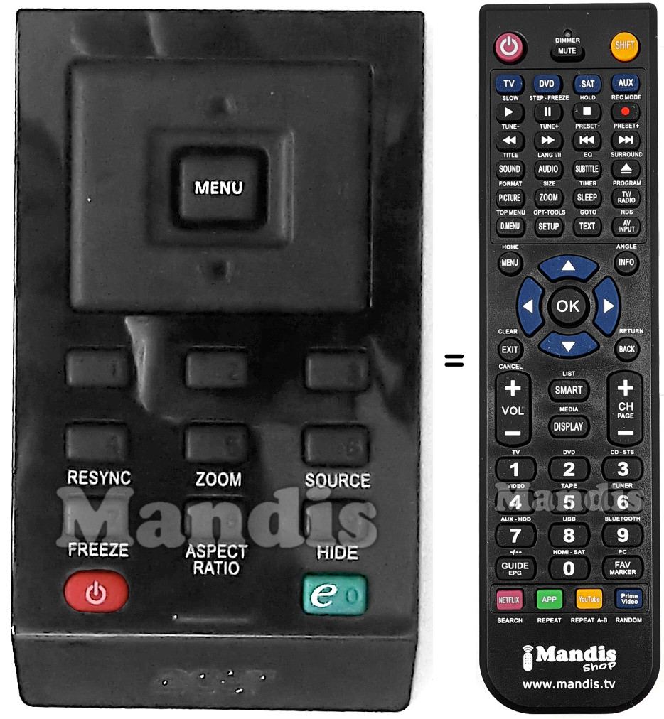 A continuació, us mostrarem la correspondència entre cada un dels botons del comandament original i el botó que realitza la mateixa funció en el comandament de substitució. En alguns casos, és possible que necessiti prémer la tecla SHIFT abans de prémer un altre botó per realitzar certes accions. Aquestes funcions addicionals sovint no s'utilitzen gaire i s'inclouen per facilitar la comprensió del comandament de substitució, o perquè el comandament original té més botons que el seu equivalent.